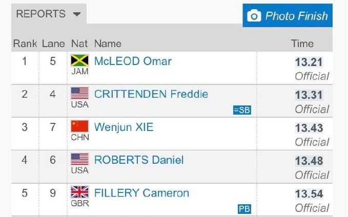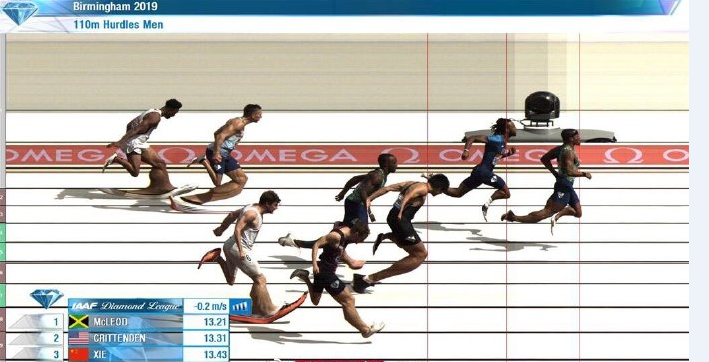 新京报讯 据中国国家田径队消息,今晚的2019国际田联钻石联赛伯明翰站男子110米栏比赛,谢文骏以13秒43(-0.2m/s)获得第三名。冠军被牙买加名将麦克劳德以13秒21夺得。