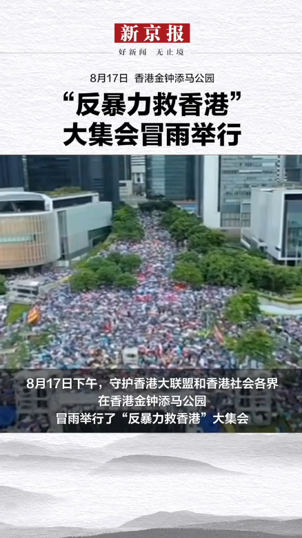 8月17日香港“反暴力救香港”大集会,民众高唱国歌