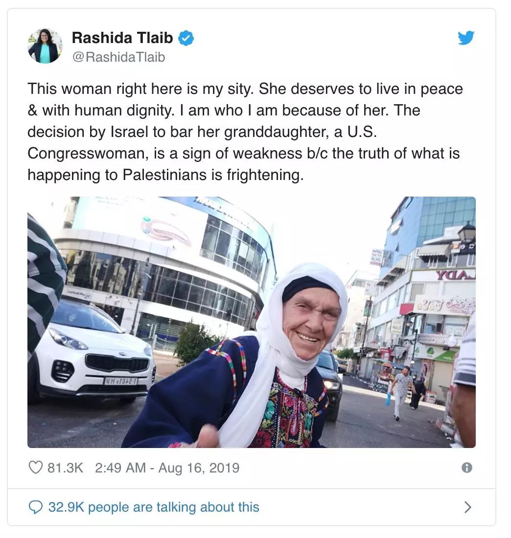 一天之后,事情出现反转——以色列方面称,允许其中一名巴勒斯坦后裔女议员布莱特入境以色列,到约旦河西岸地区对其90多岁高龄的祖母进行"人道主义"探望。