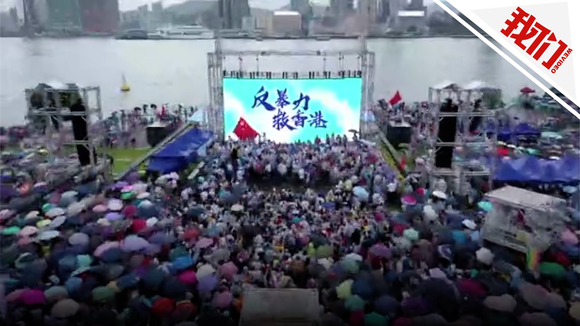 香港举行“反暴力 救香港”大集会 数十万人冒雨唱国歌