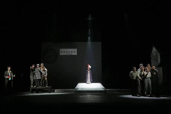 全剧无论是在情节安排和冲突展开,还是在人物刻画和环境烘托方面都充满了令人惊愕的怪诞色彩。读者从居勒人"此地无银三百两"的滑稽表演中感受到的只是现实的怪诞:一个被物化了的存在,一个没有个性的群体,一个名存实亡的灵魂。