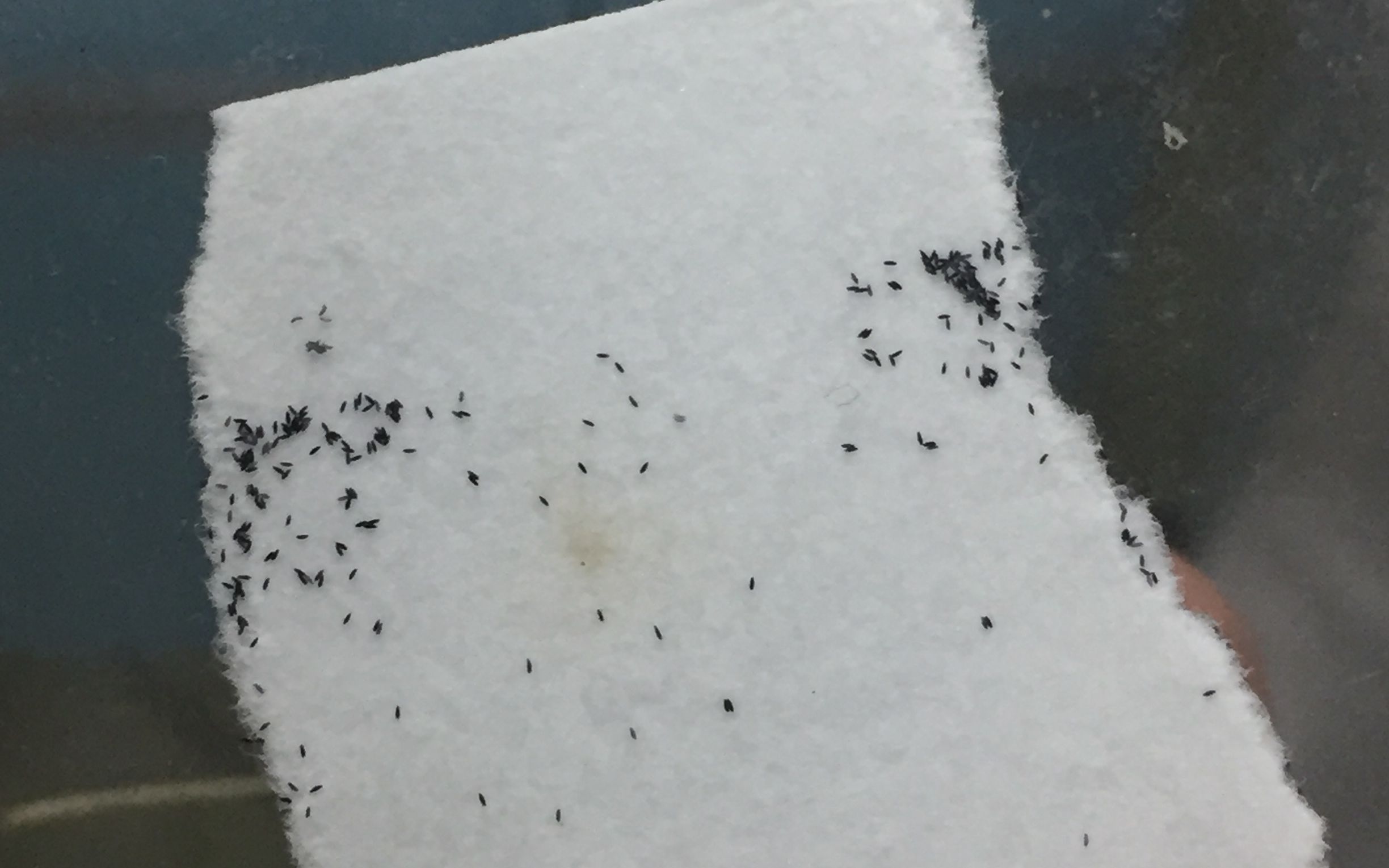 粘附在纸条上的蚊子卵。 新京报记者 韩沁珂 摄