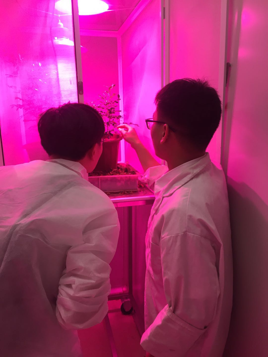 柑橘飞虱的保种间,灯光被设置为模拟其生活环境的红色。 新京报记者 韩沁珂 摄