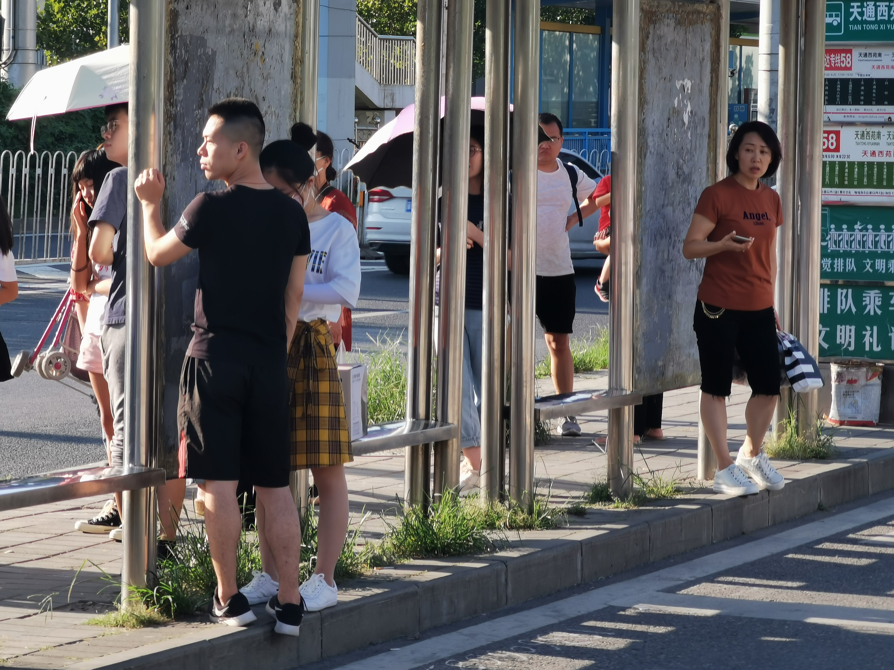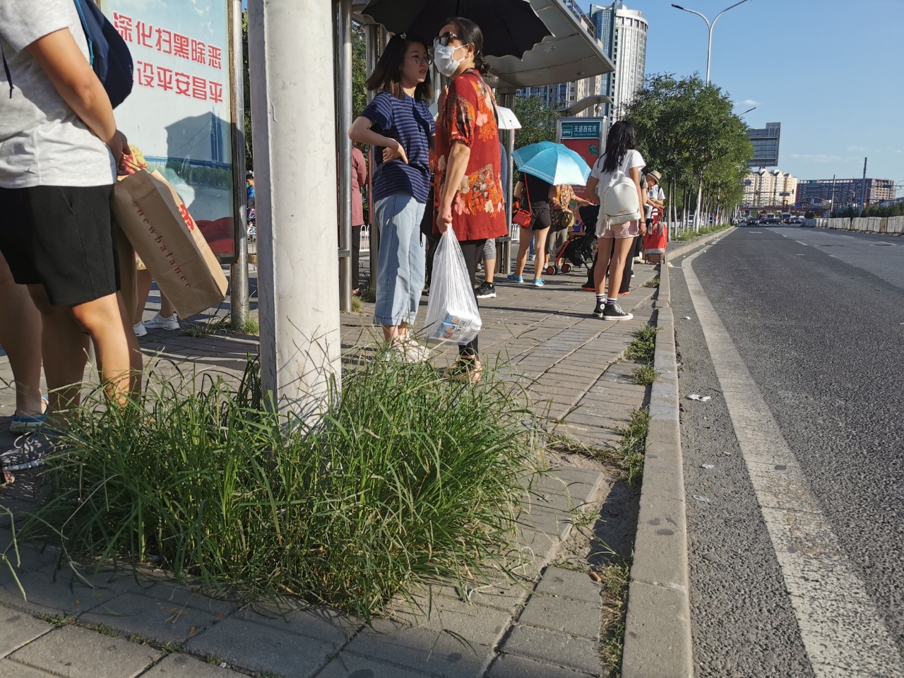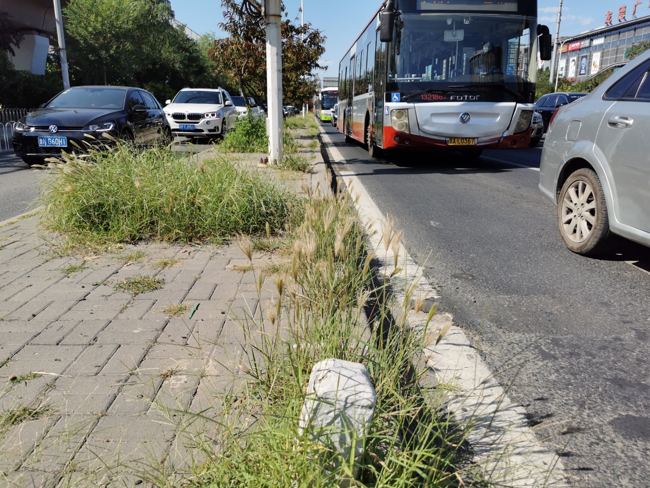 马路东侧天通西苑南公交站台长了许多杂草。